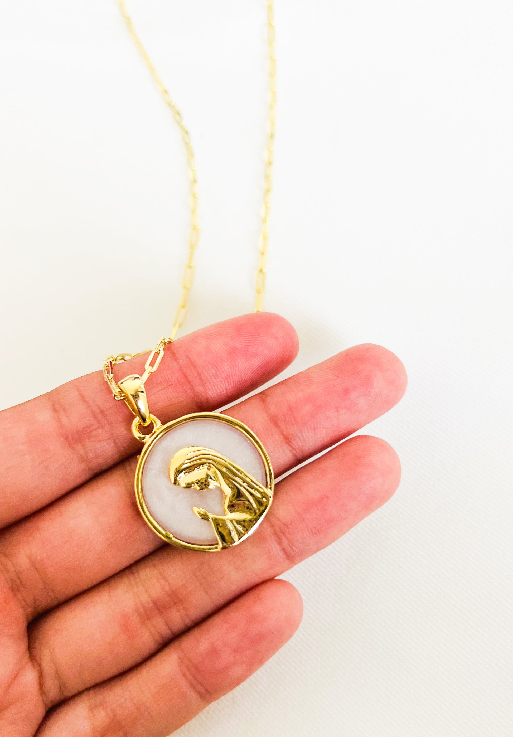 Enchape oro | Nácar | Medalla 25 mm | 40cm + 5cm alargue